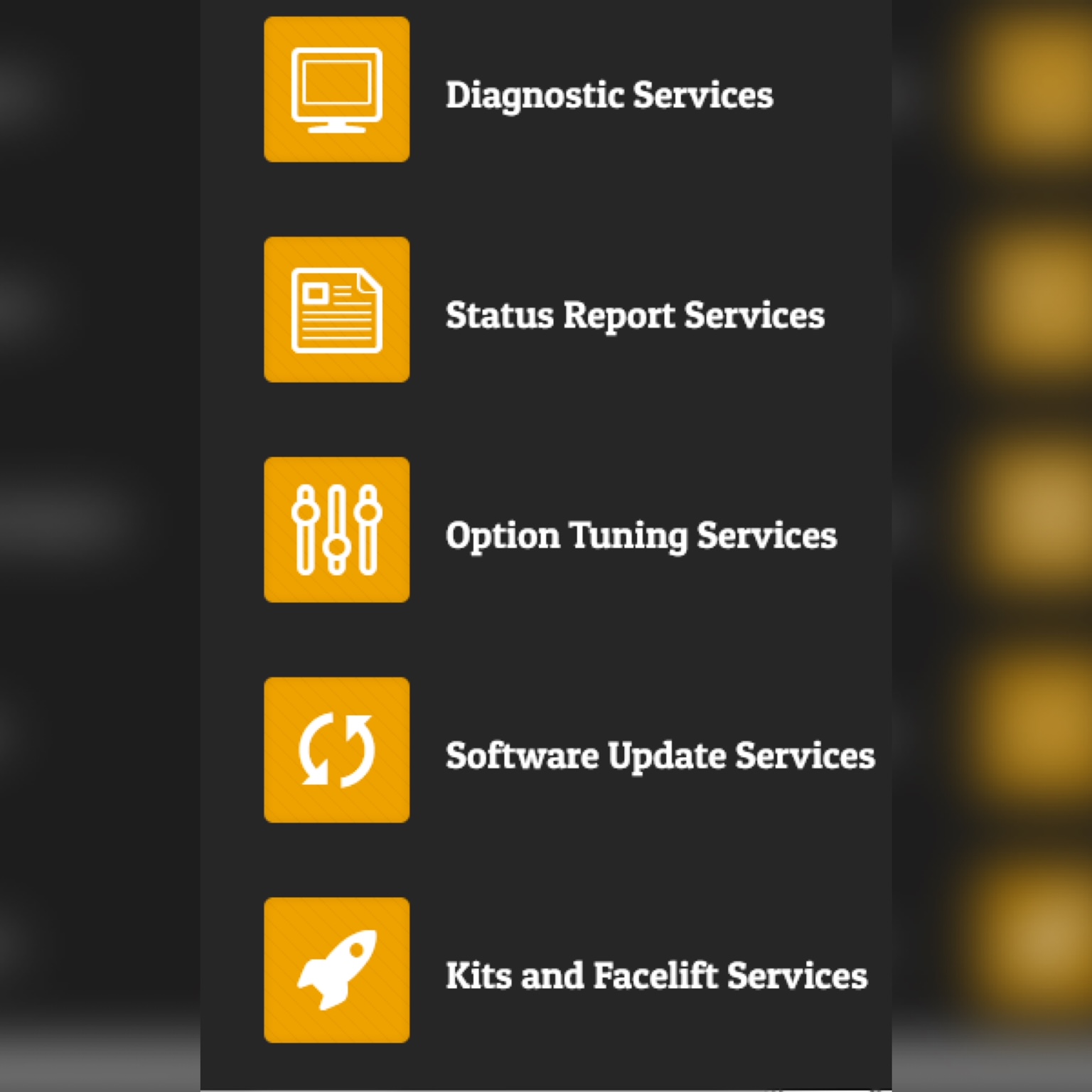 خدماتنا نحن نقدم مجموعة من الخدمات المتعددة خدمة تشخيص الاعطال تقرير فحص شامل عن حالة السيارة خدمة اعادة ضبط الاعدادات خدمة التحديث و البرمجة خدمة تعديل هيكل السيارة اصلاح جميع الاعطال الميكانيكية اصلاح و صيانة نظام التعليق اصلاح اعطال المكيف اصلاح الاعطال الكهربائية اصلاح القطع الالكترونية نظام التشتغيل و نظام الحماية من السرقة الرادار و نظام الامان نظام تحديد الوجهات و نظام GPS نظام الصوت و المكالمات نظام الفيديو و الكاميرة كما نقوم بتأمين جميع انواع قطع الغيار و القطع الاستهلاكية بأفضل جودة و افضل الاسعار, بفضل من الله تميزنا بمقدرتنا على اصلاح اصعب المشاكل التقنية و الفنية و الميكانيكية